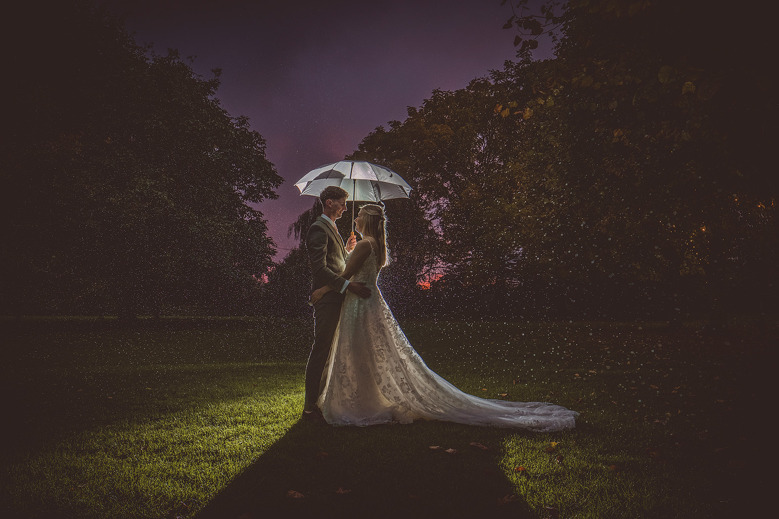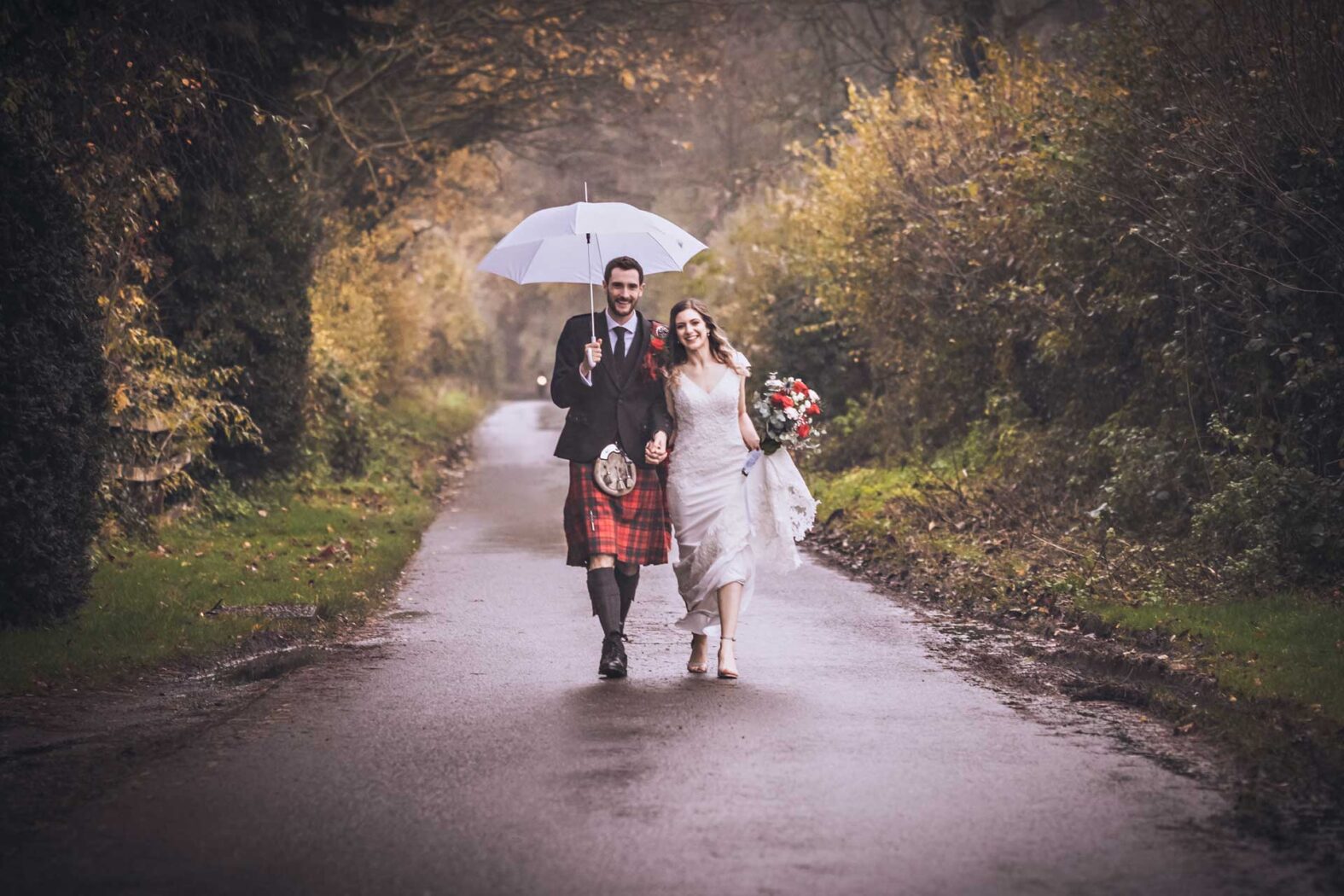 1.  What happens if it rains?  If your ceremony is elsewhere you will feel almost no impact at all.  The tables will be set up by your caterer and will likely be hidden behind the ‘blinds’ until a spectacular reveal just before guests are called to the wedding breakfast.  However, if your ceremony is at the barn then you’ll have just a few minutes of transition whilst space is made to move the tables (largely set up at the back) around to where the ceremony was previously held.  I know what you’re thinking.  “Oh my, this is going to be a nightmare”.  STOP!  It’s not.  In fact, it all happens so smoothly as the dynamics of large groups take on a lava like feel and folks slowly feed into areas that are now free and available.  It all takes no more than 15 minutes and suddenly everything is switched and the caterers are off and running.  Believe me.  You’ll be hugged, kissed, squeezed and selfie’d so many times you won’t even notice.  Once complete the day then proceeds like a winter wedding.  The space is glorious and ambience second to none.  In short, it will be just fine.